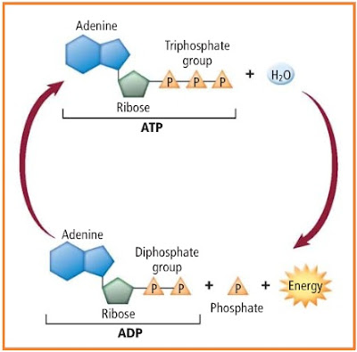 perubahan ATP menjadi ADP di ikuti dengan pembebasan energi sebesar 7,3 kalori/mol ATP.